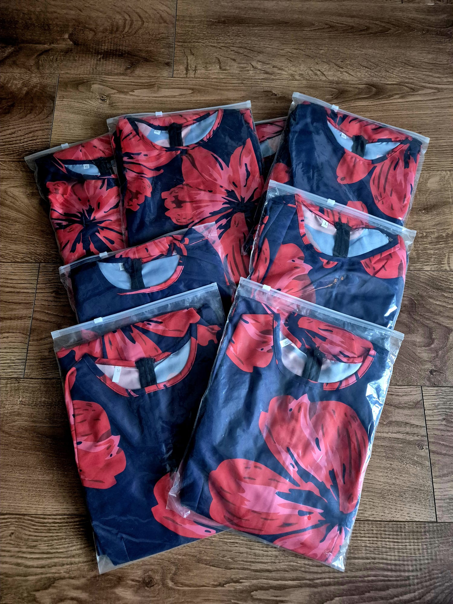 Navy dress with red flowers on it