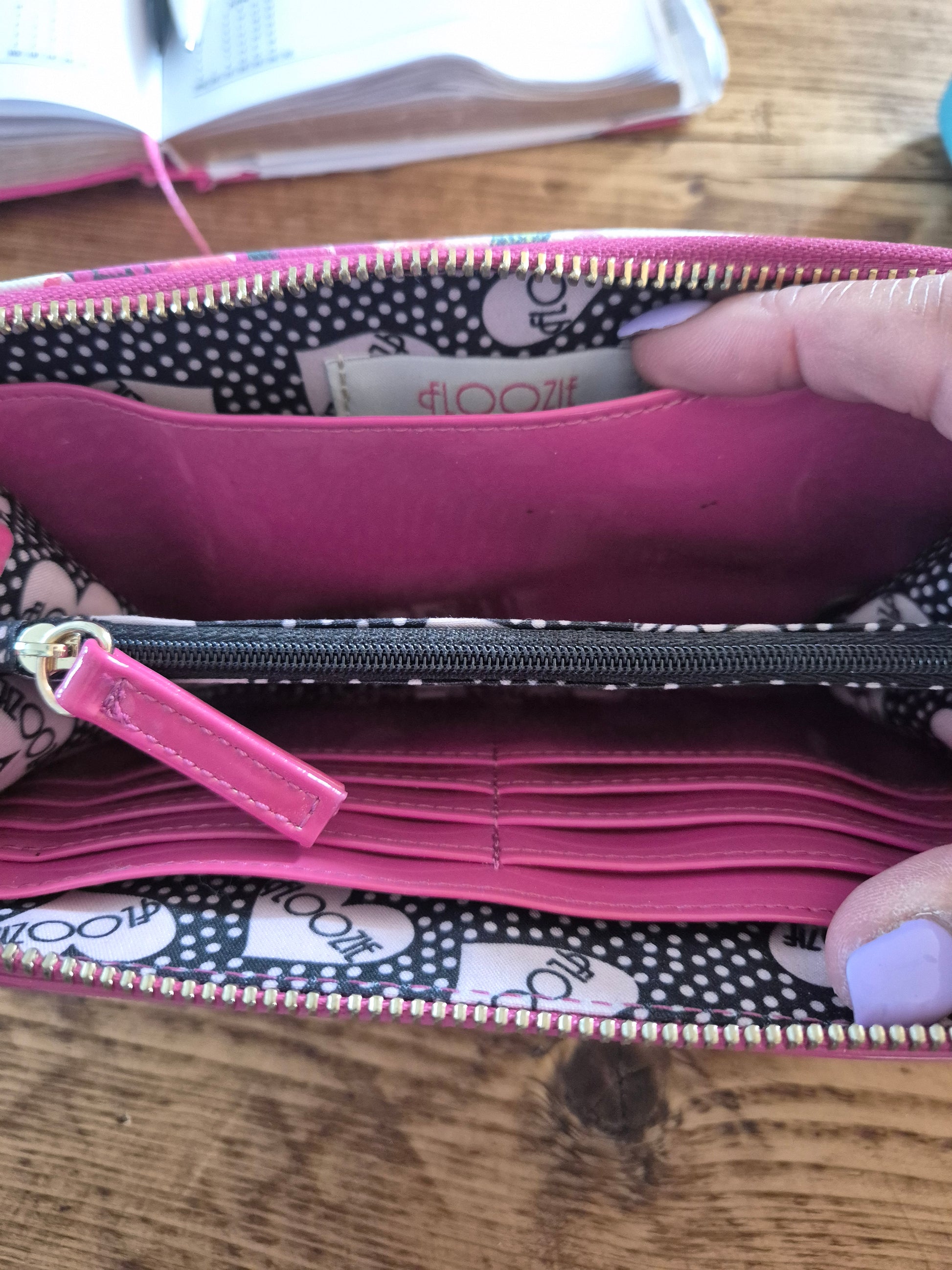 Beautiful matching Floozie handbag and purse. Handbag has inside zip for additional security and a mobile phone pocket. Purse has multiple card slots and inside zip for small change etc